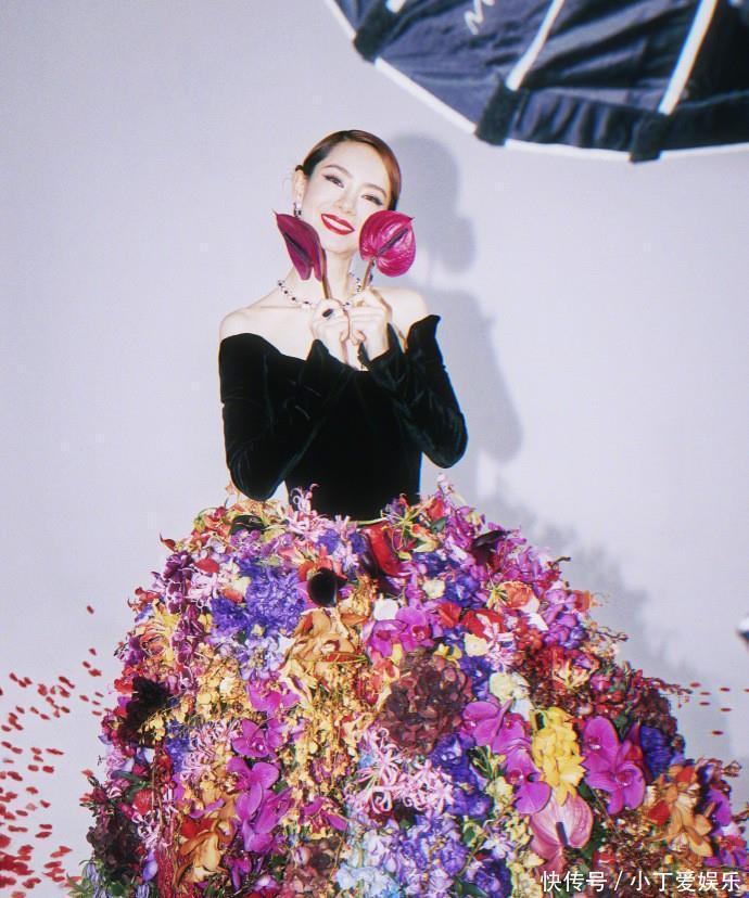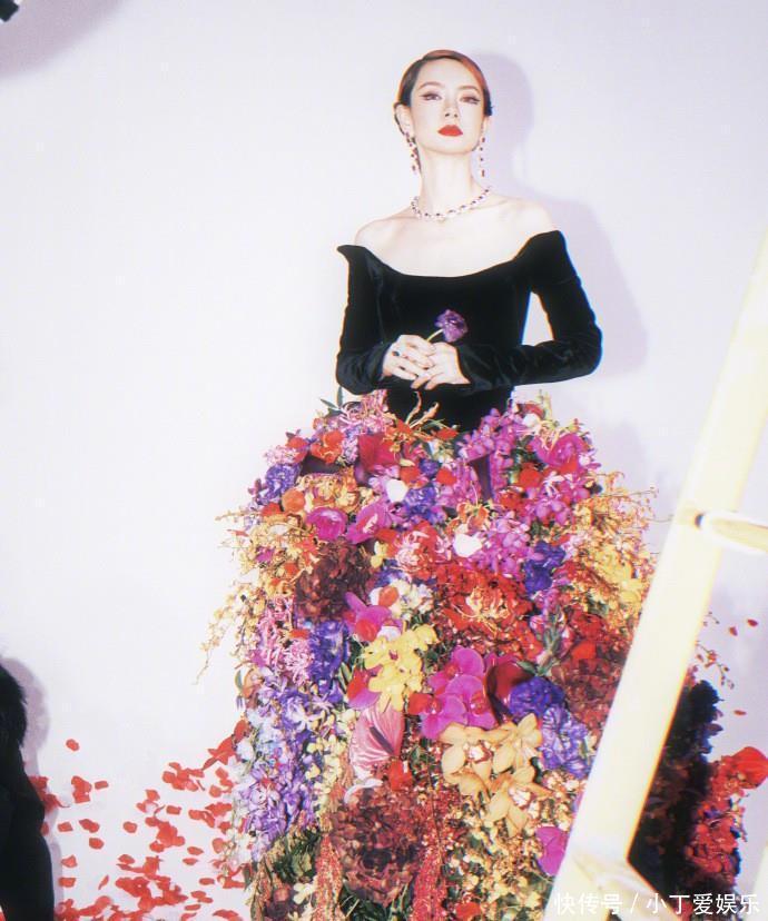 鲜花礼裙戚薇出手果然不同凡响。这次她居然用真花打造出花团锦簇的裙摆裙装居然重达百斤不过戚薇的这款造型也成为盛典上吸睛的神器。